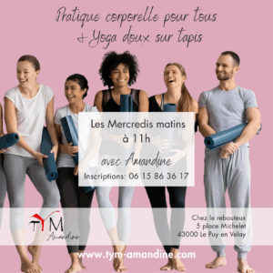 Retrouvons-nous les mercredis pour un temps de yoga doux sur tapis & de pratique corporelle ensemble, pendant toute l'année scolaire 2025 - 2026: au Puy en Velay (43) ...