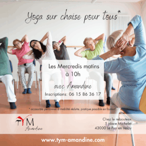 Le yoga sur chaise est une pratique douce, permettant de continuer à faire travailler son corps tout en douceur, de lutter contre la fonte musculaire due à la vieillesse ou à des contraintes physiques rencontrées ( accident / handicap...), favorisant une meilleure amplitude respiratoire, et développant l'approche méditative pour plus de sérénité. ...