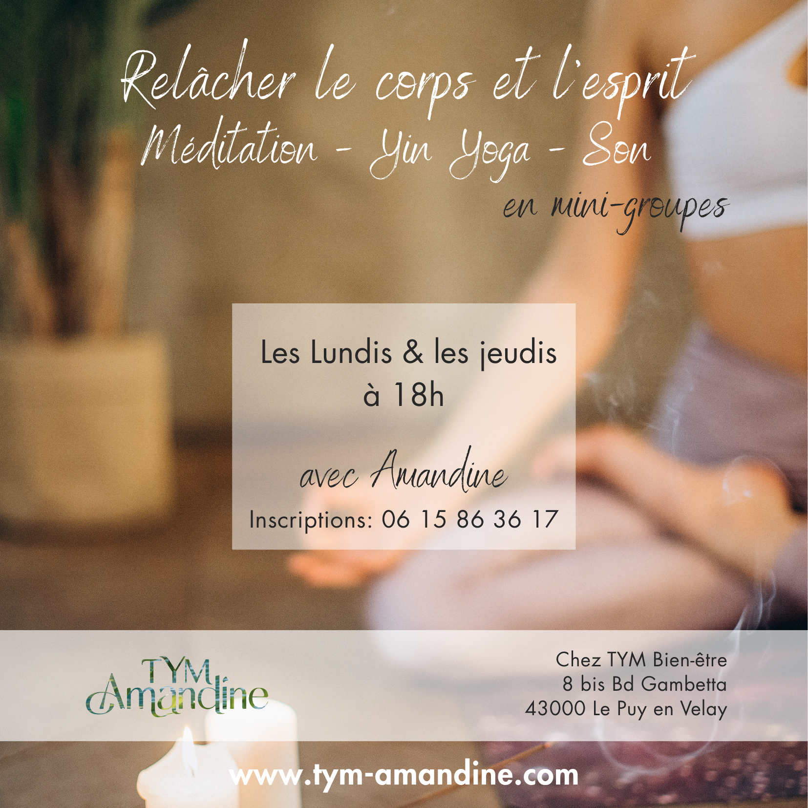 - Un espace dédié TYM Bien-être propice au calme et à la concentration ́- Un encadrement de temps défini que je crée et maintiens par ma présence et mon attention.