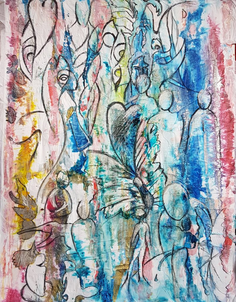 A toi qui pose le regard sur ce tableau, si il croise ton chemin et qu’il te parle, laisse toi porter par sa symbolique, vois si il peut t’apporter des réponses à tes interrogations, t’aider à entrer en connexion avec…